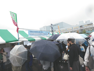 「ちくさんフードフェア2025」と「ジャパンミートピア2025inかながわ」が11〜12日の2日間、神奈川県川崎市東扇島の日本食肉流通センターをメイン会場として開催された。同フェアは新型コロナやセンターの工事などにより中止していたが昨年から再開。初日はあいにくの雨模様となったが、会場には家族連れなど多くの来場者が訪れた。懸念されていた交通渋滞については、入場ルートを設定し、警備員を46人増員するとともに、マリエン内に警備本部を設置。同時開催の川崎みなと祭りと連携し指揮を徹底するなど、体制を強化した。